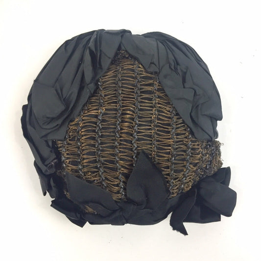Antique Victorian Black Mourning Bonnet Cap with Brown & Black Ribbon Trim