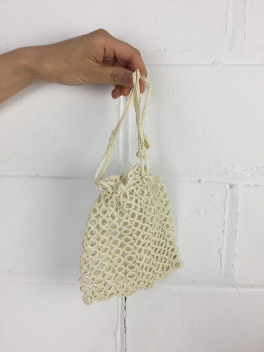 Antique Edwardian 1900s White Cotton Crochet Evening Bag/ Drawstring Pouch Purse