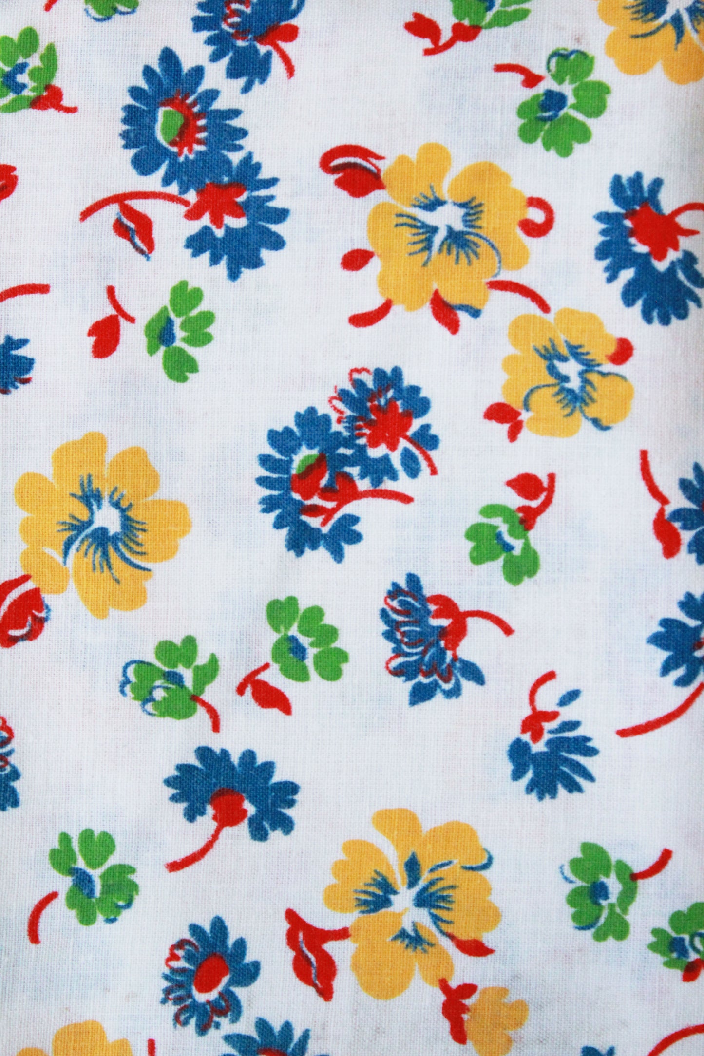 A 1940s floral feedsack! in primary colours, Red, Yellow and blue (with a bit of green) They are beautiful flowers. Would make a great summer top or apron !