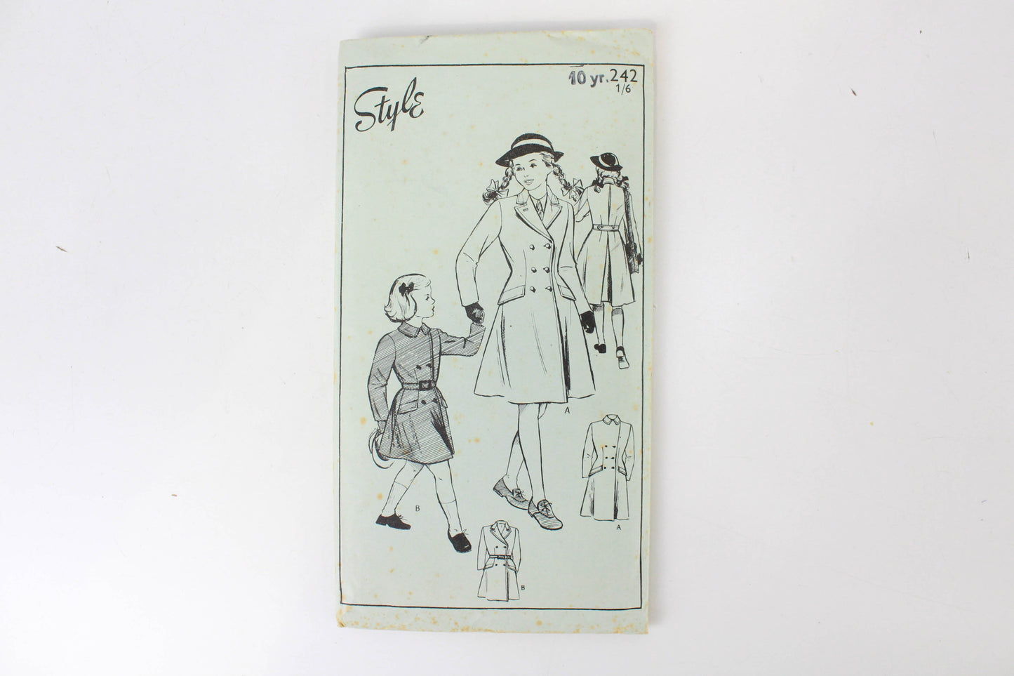 1940s Girls Coat Sewing Pattern Style 242, 10 Years, Complete Unused