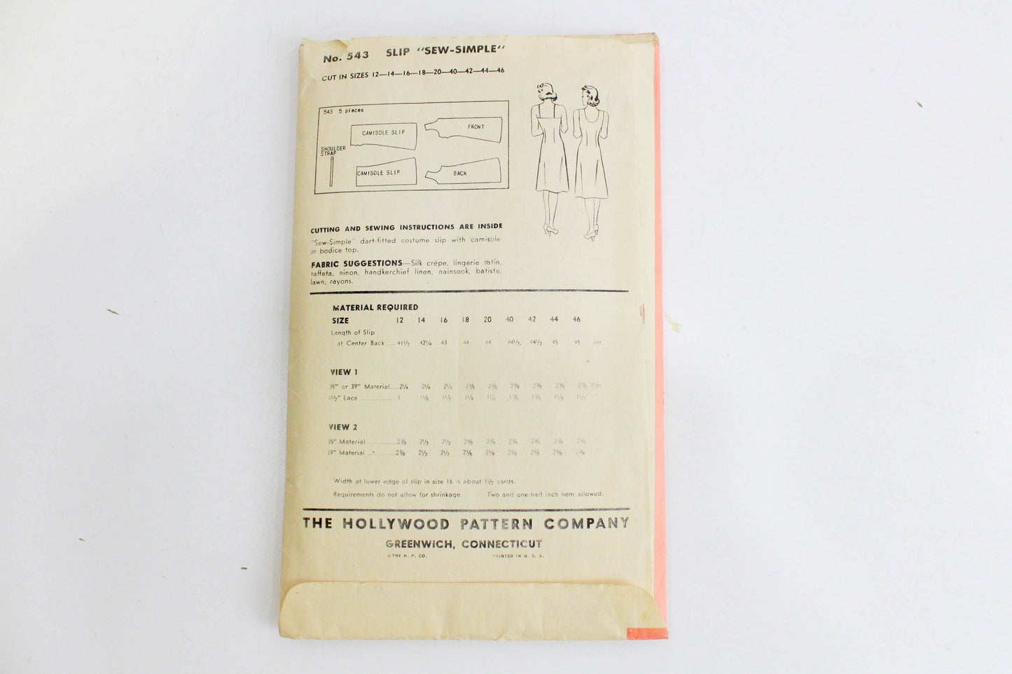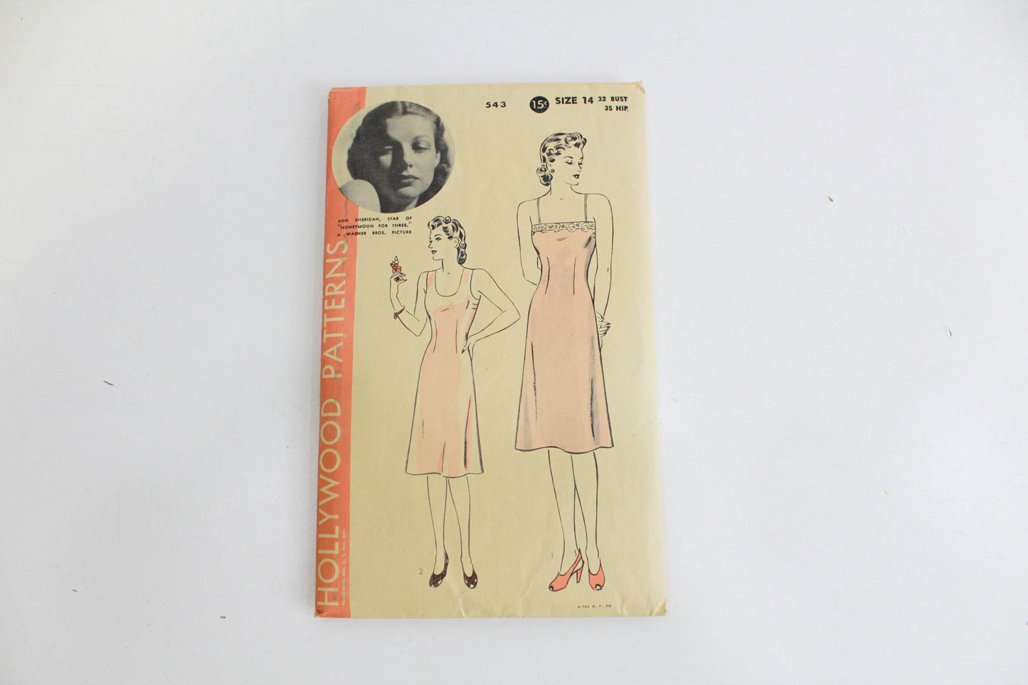 1940s Lingerie Slip Sewing Pattern Hollywood 543, Complete, Bust 32, Ann Sheridan on Cover