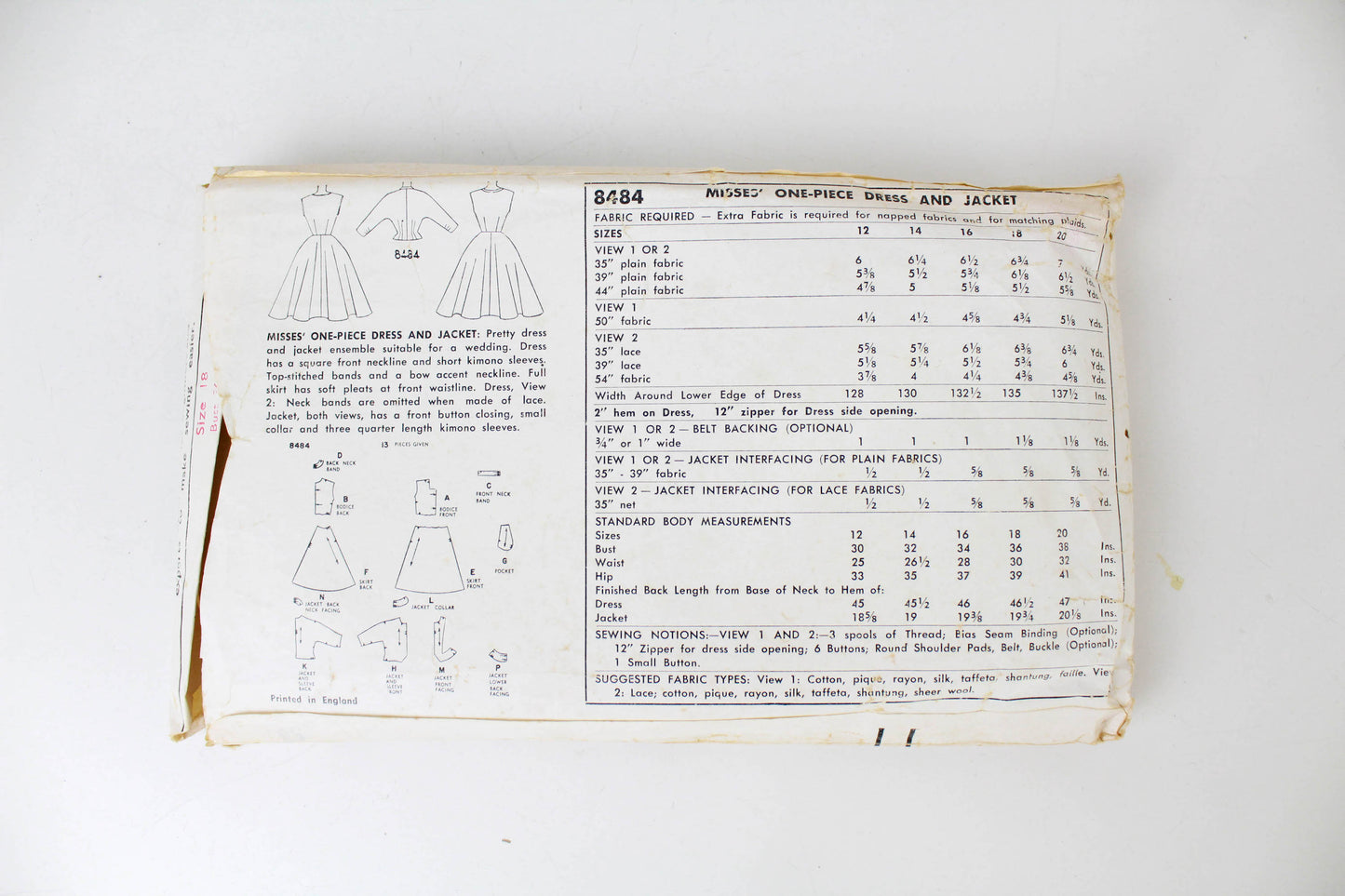 1950s Dress and Jacket Sewing Pattern Simplicity 8484, Bust 36 Complete