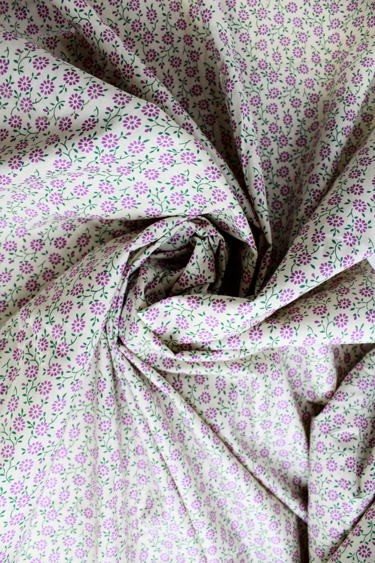 1950s Lilac Purple Dainty Floral Print Cotton Fabric 8 1/2 Yards