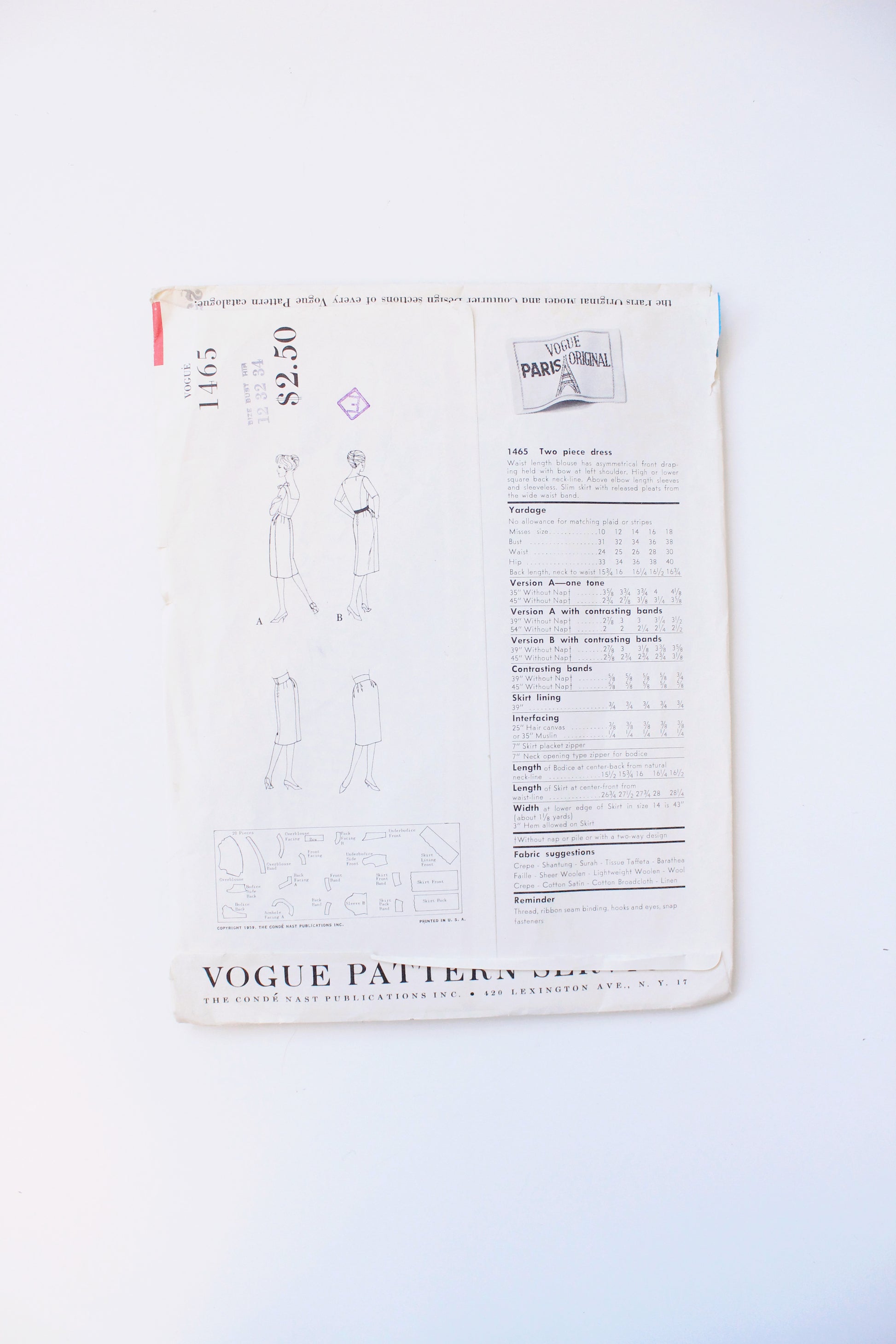 1950s Two Piece Dress Vogue Paris Original 1465 Sewing Pattern, Patou, Uncut- Complete Size 12