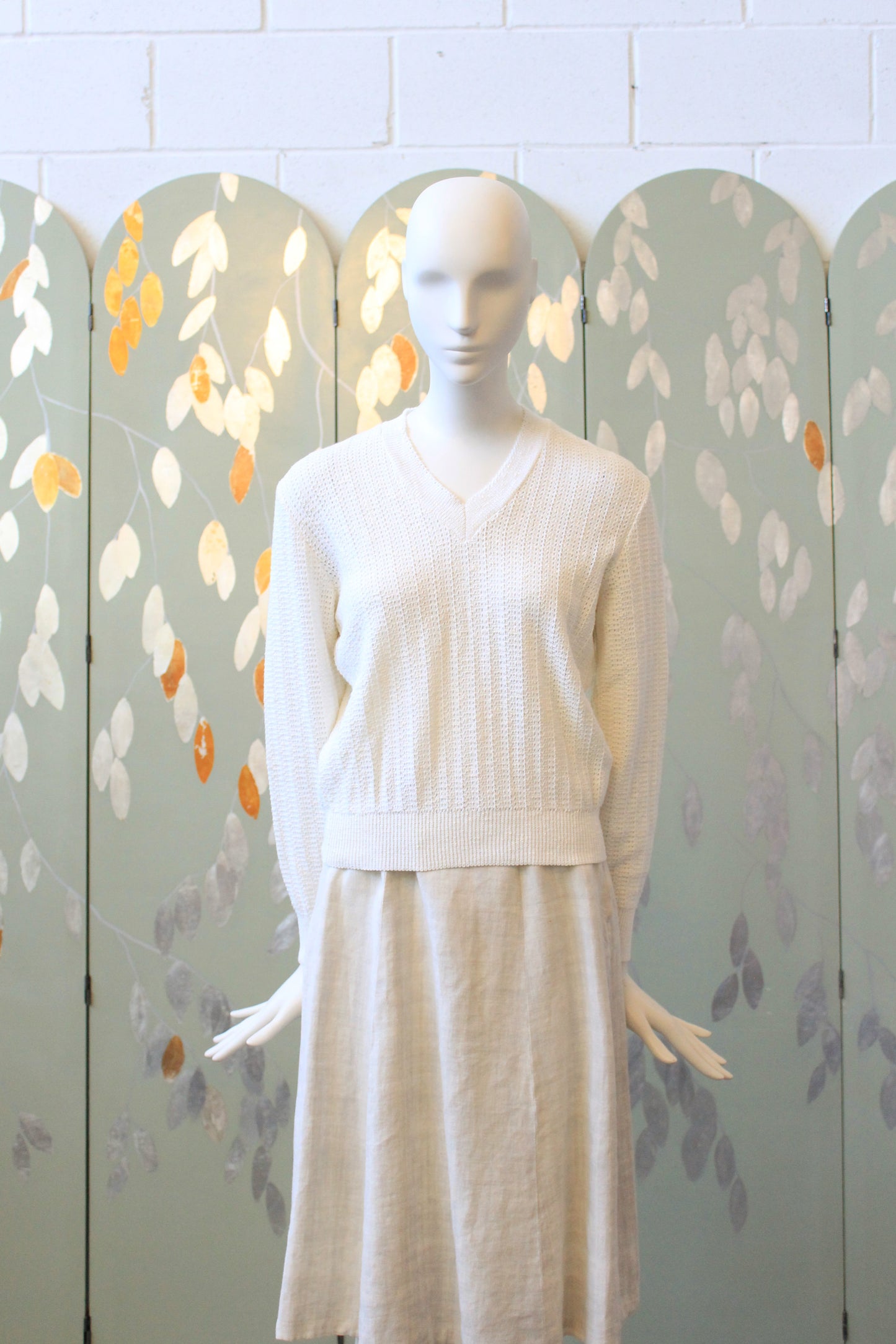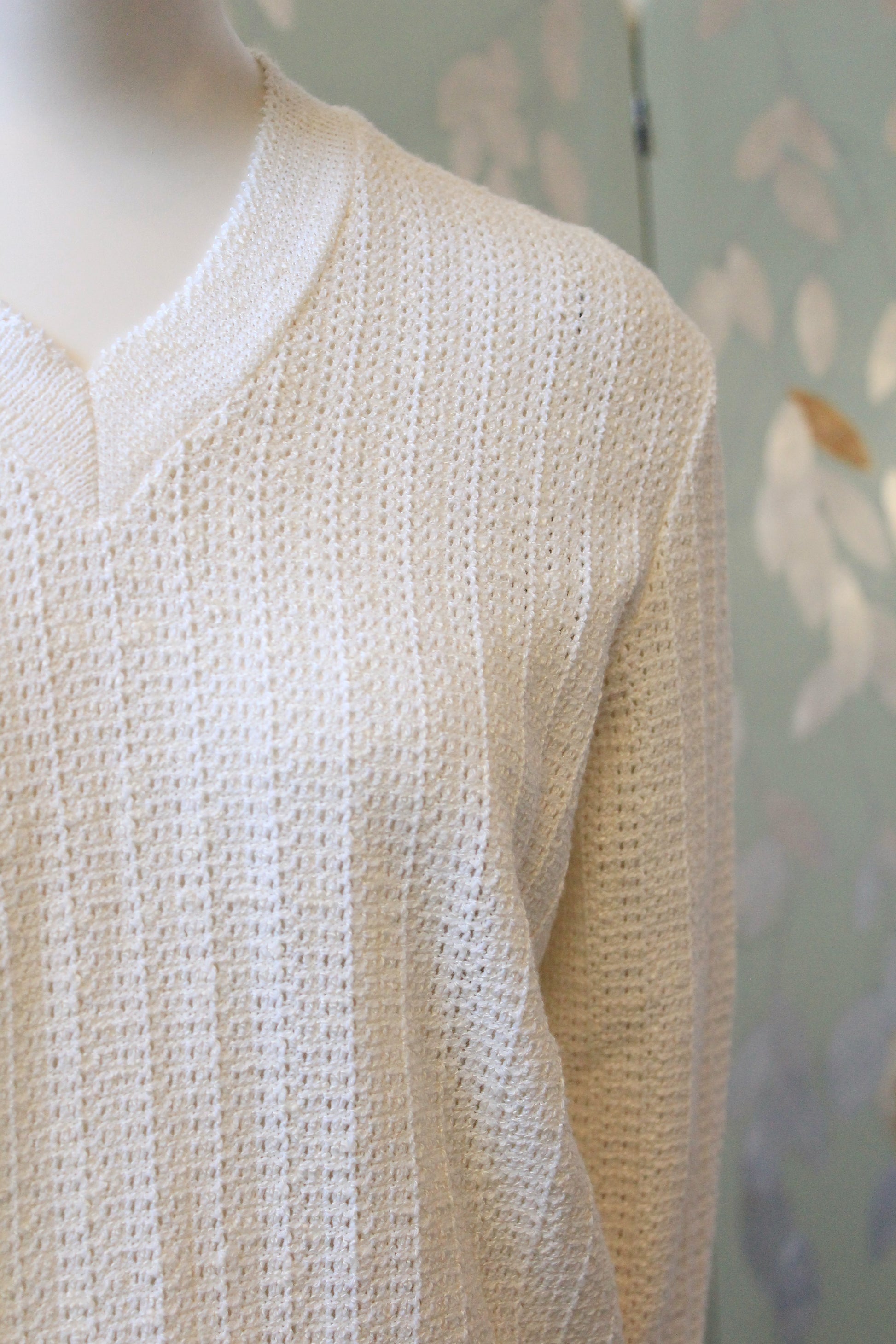 I can't think of a more classic top for any wardrobe ! This long sleeve vintage top is deadstock from the 1980s. It has a V neckline, and it's in a cream colour. Wear it on it own or over a blouse.