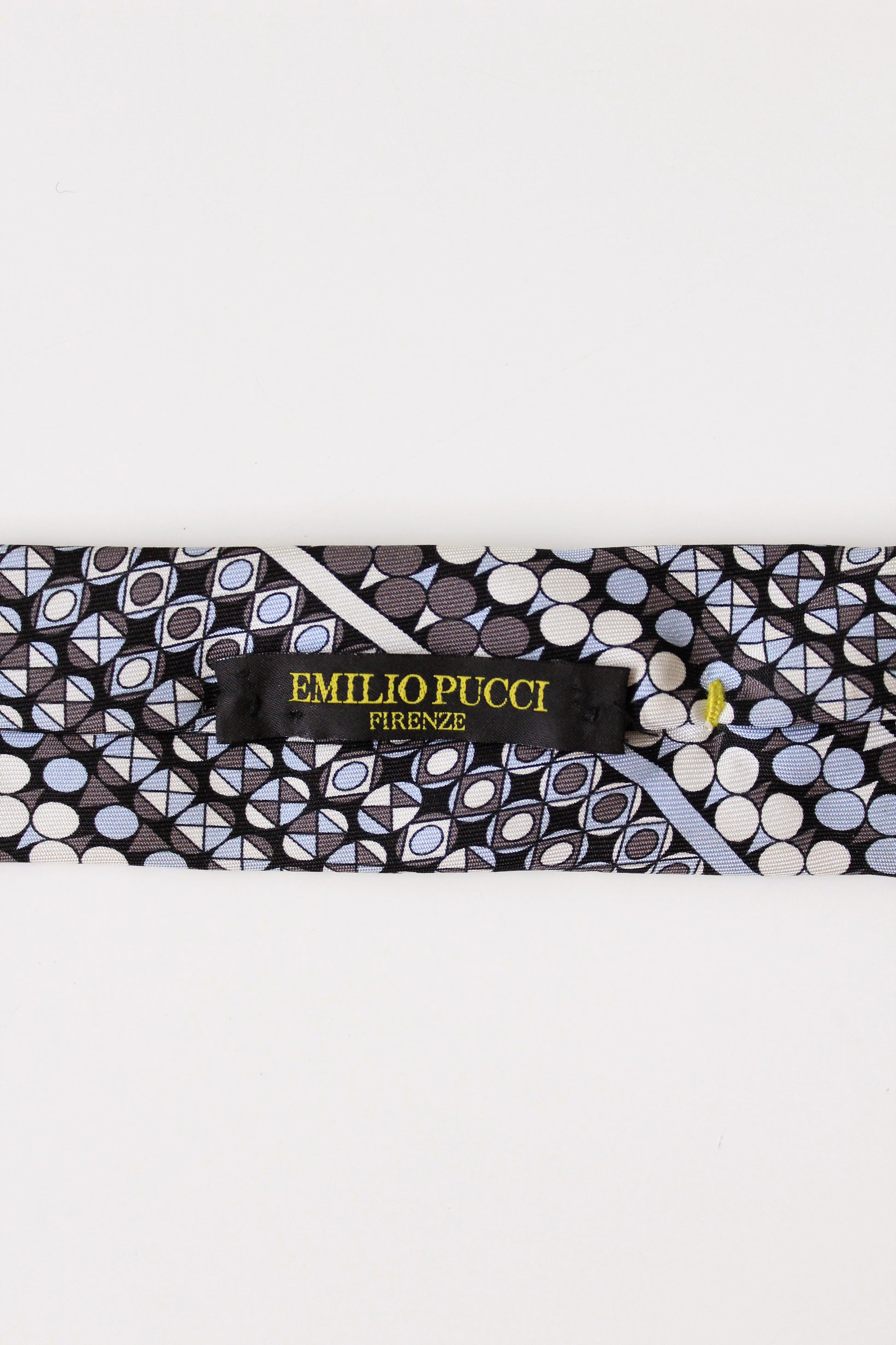 1990s Emilio Pucci Grey And Light Blue Repeating Pattern Silk Designer Tie