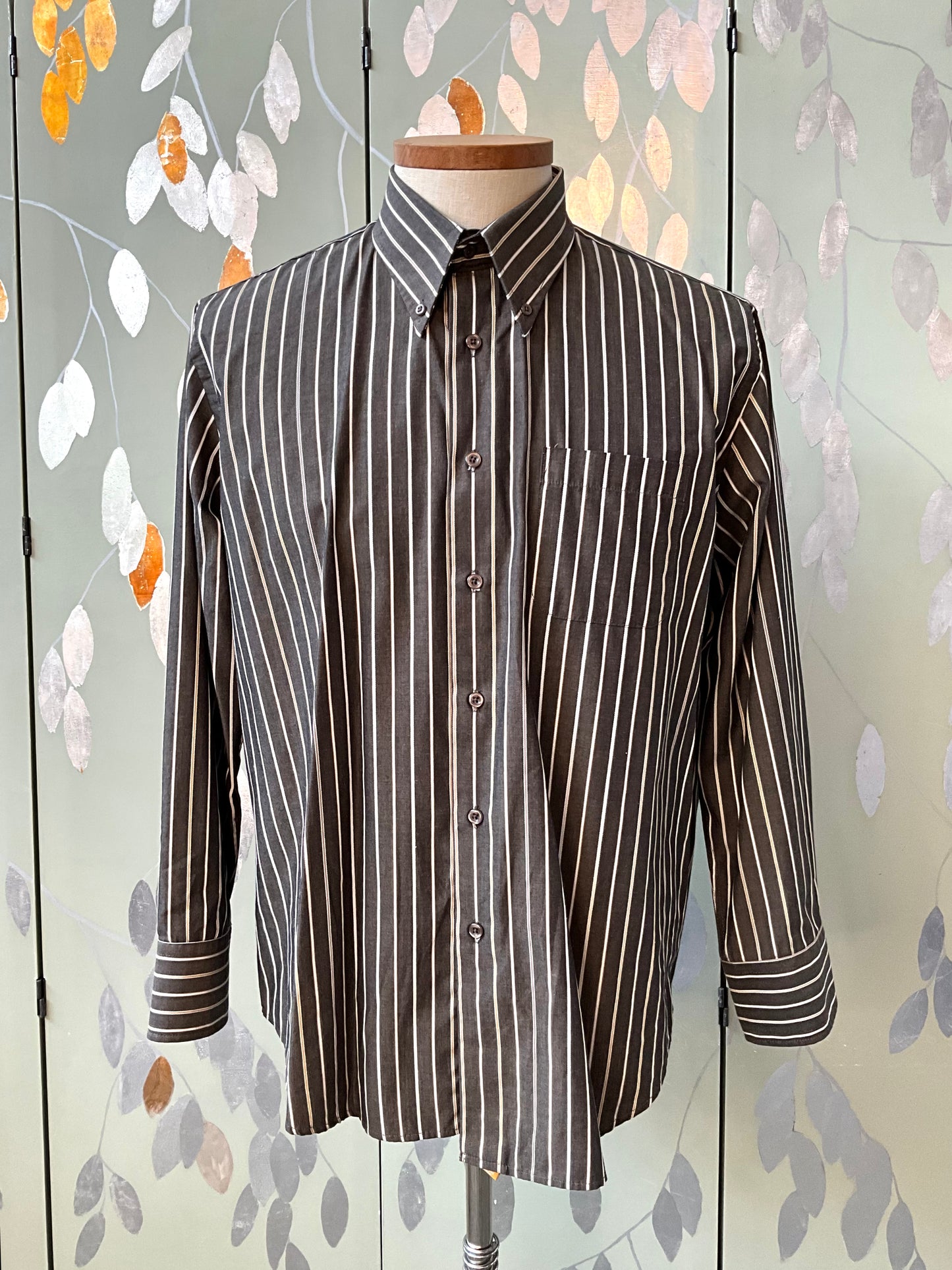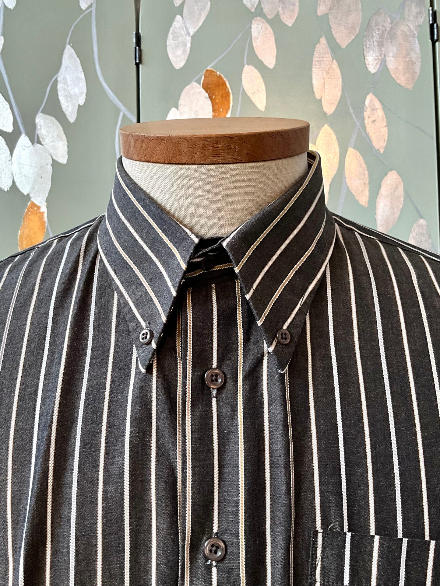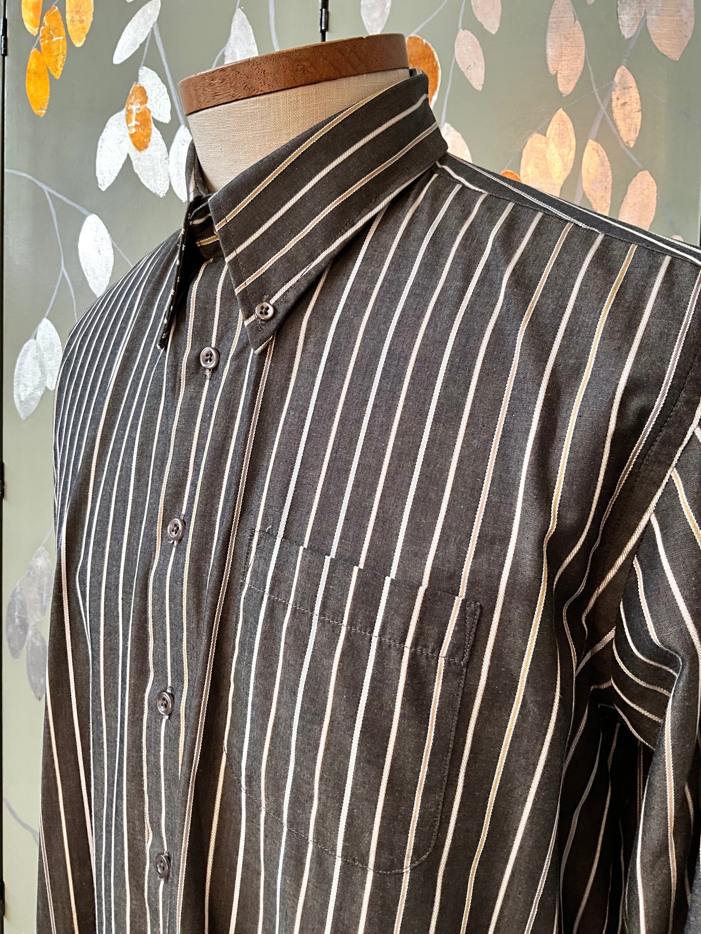 Men's Brown Striped Button Down Collar Shirt, Large