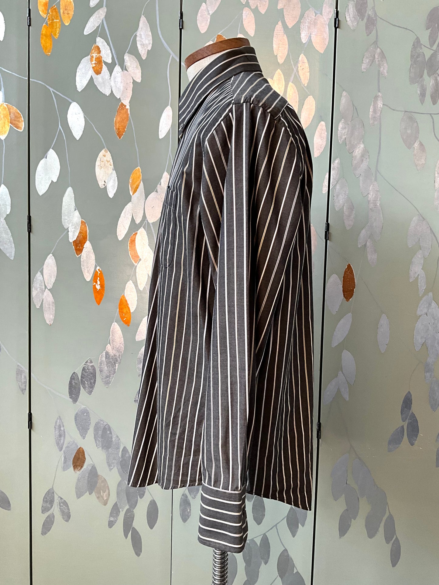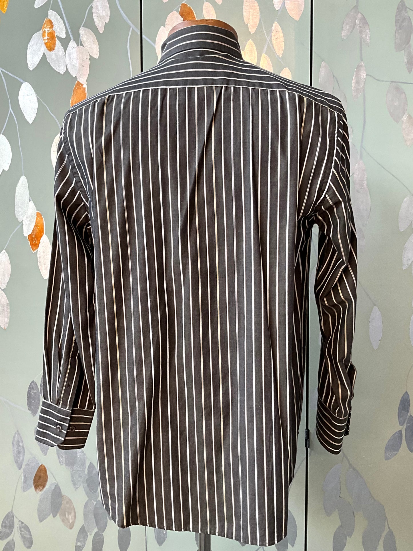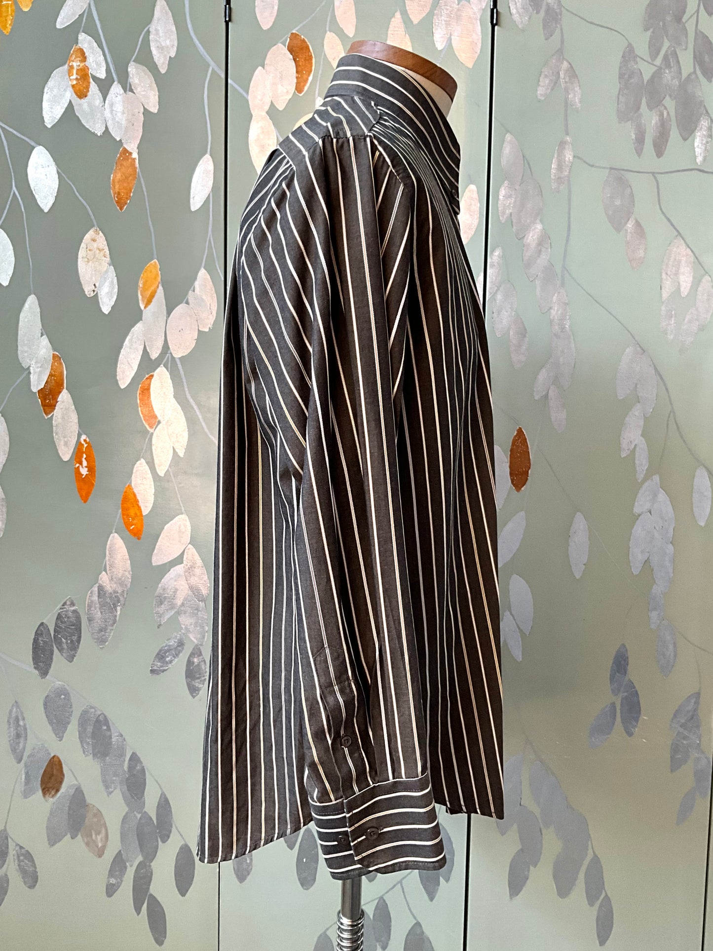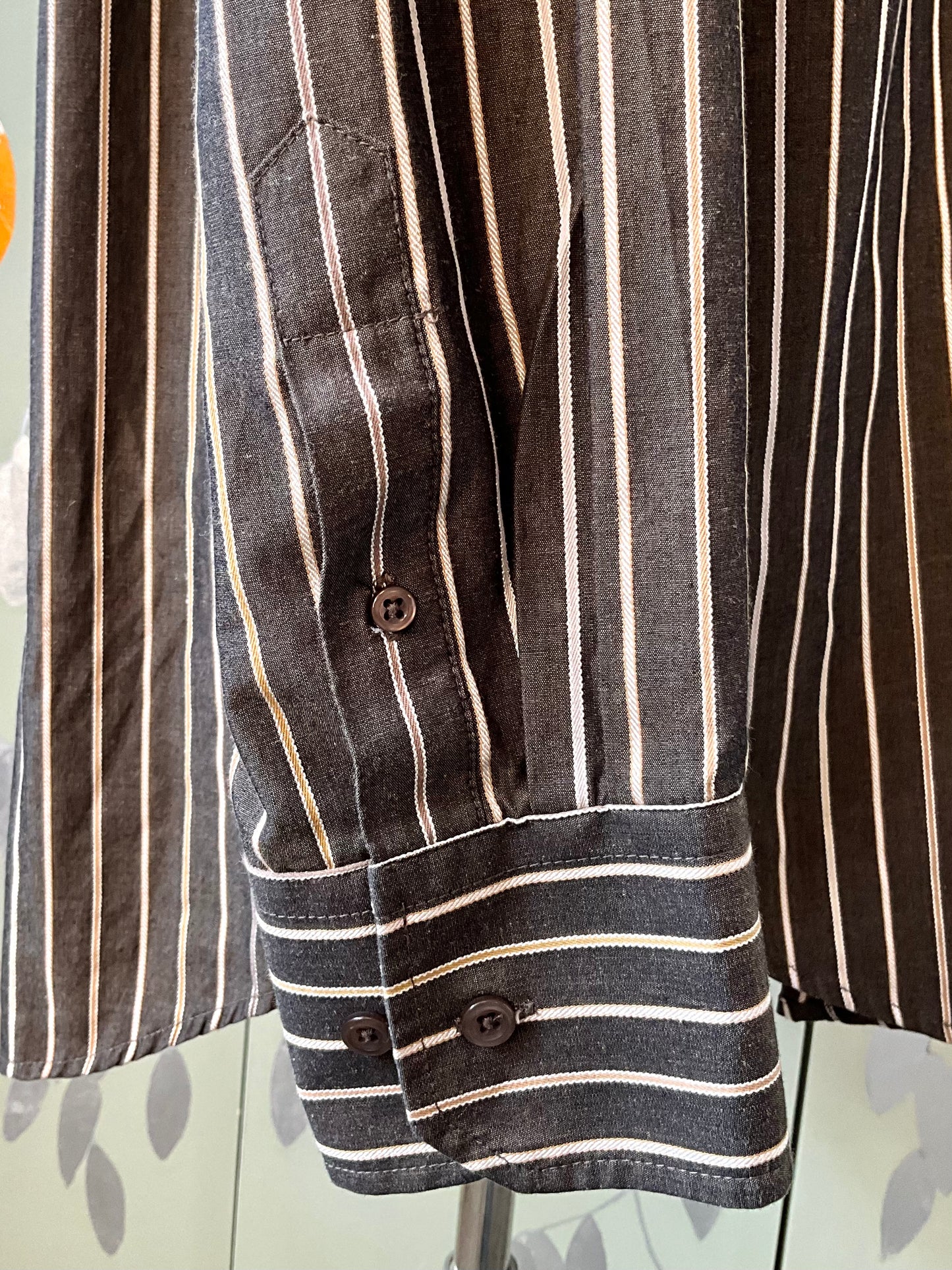 Men's Brown Striped Button Down Collar Shirt, Large