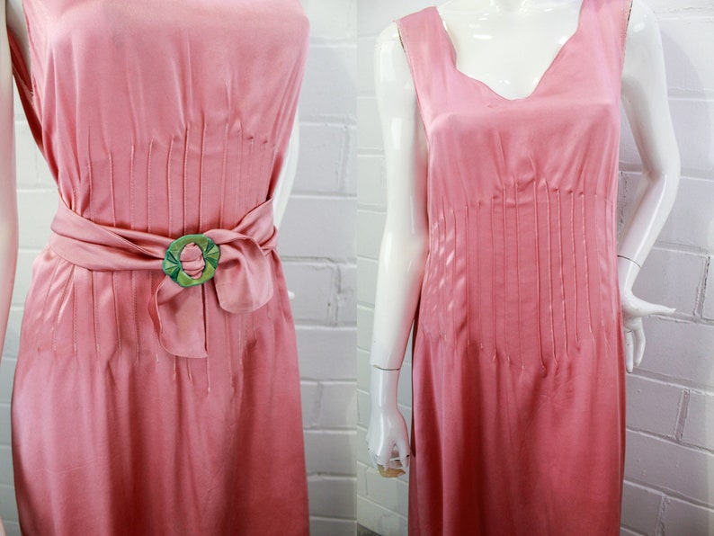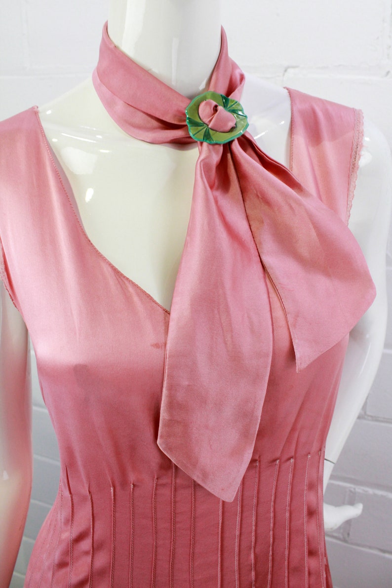 Vintage 1930s Rose Liquid Satin Slip Dress, Medium