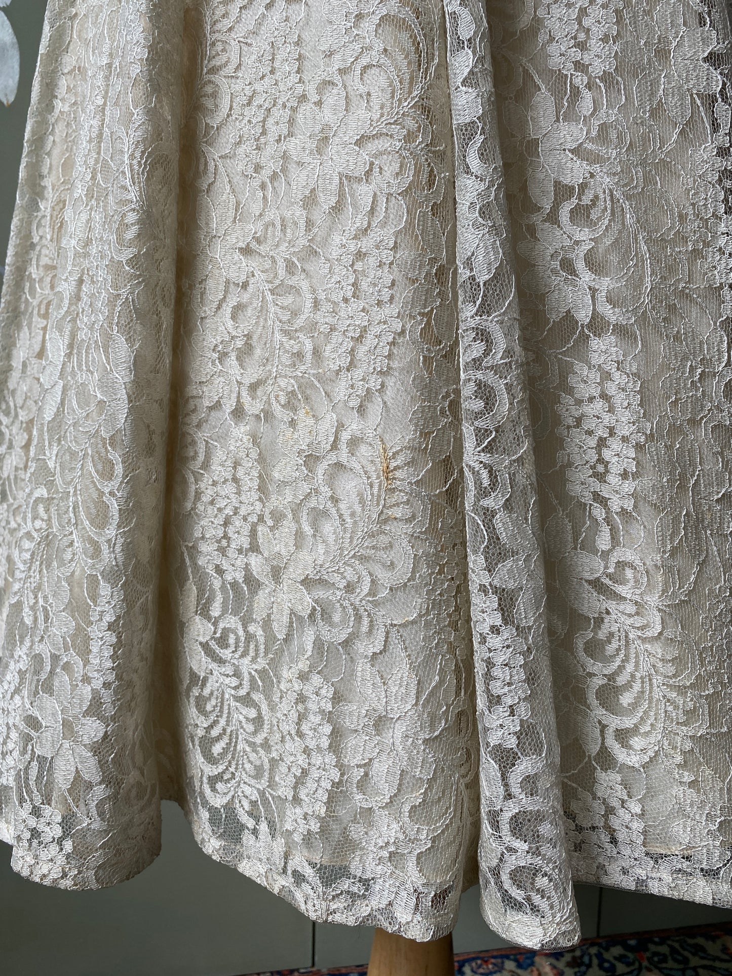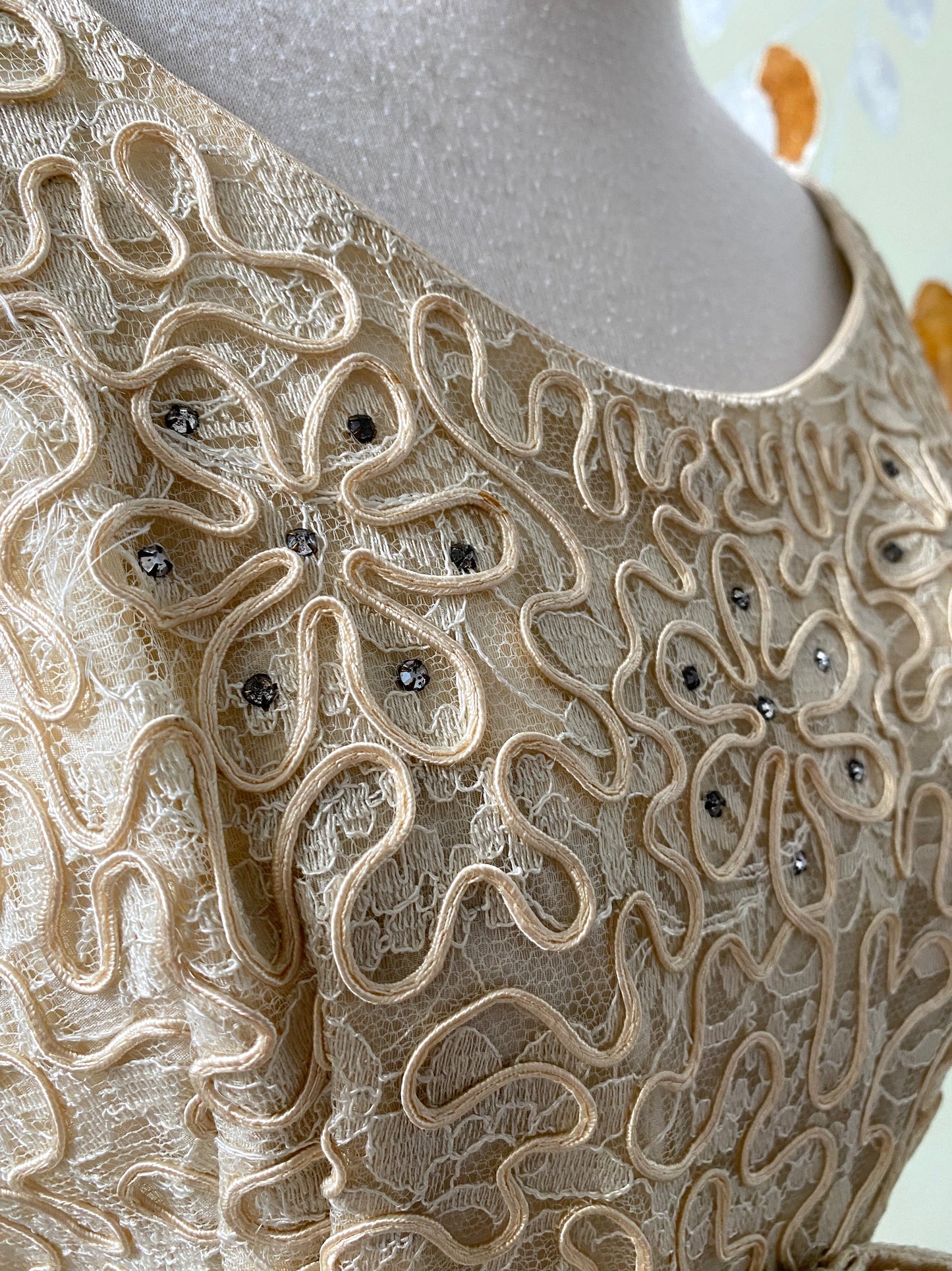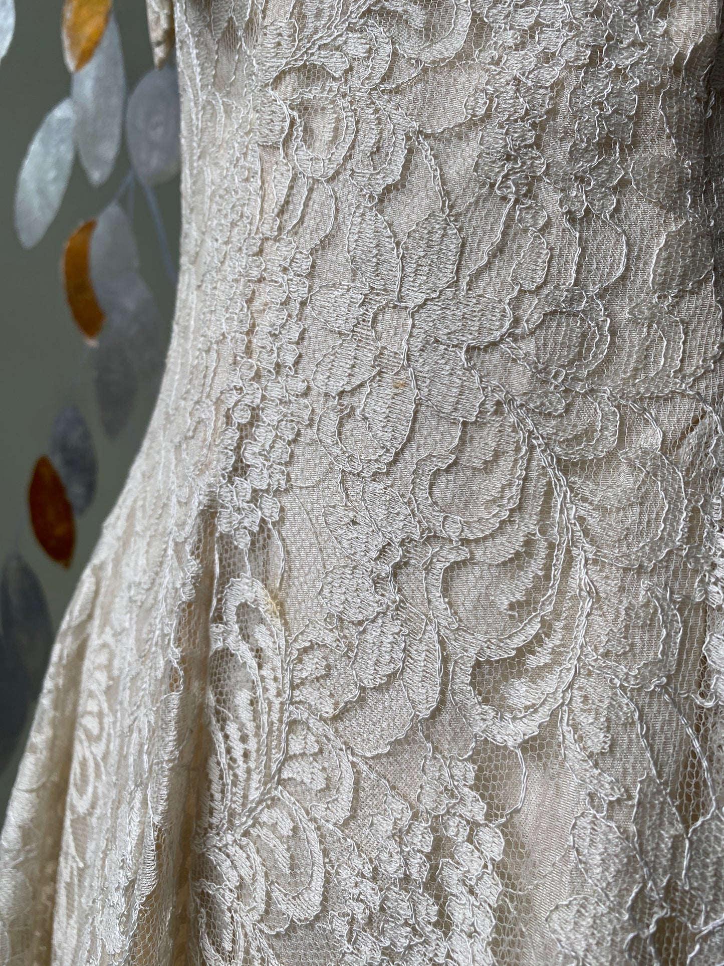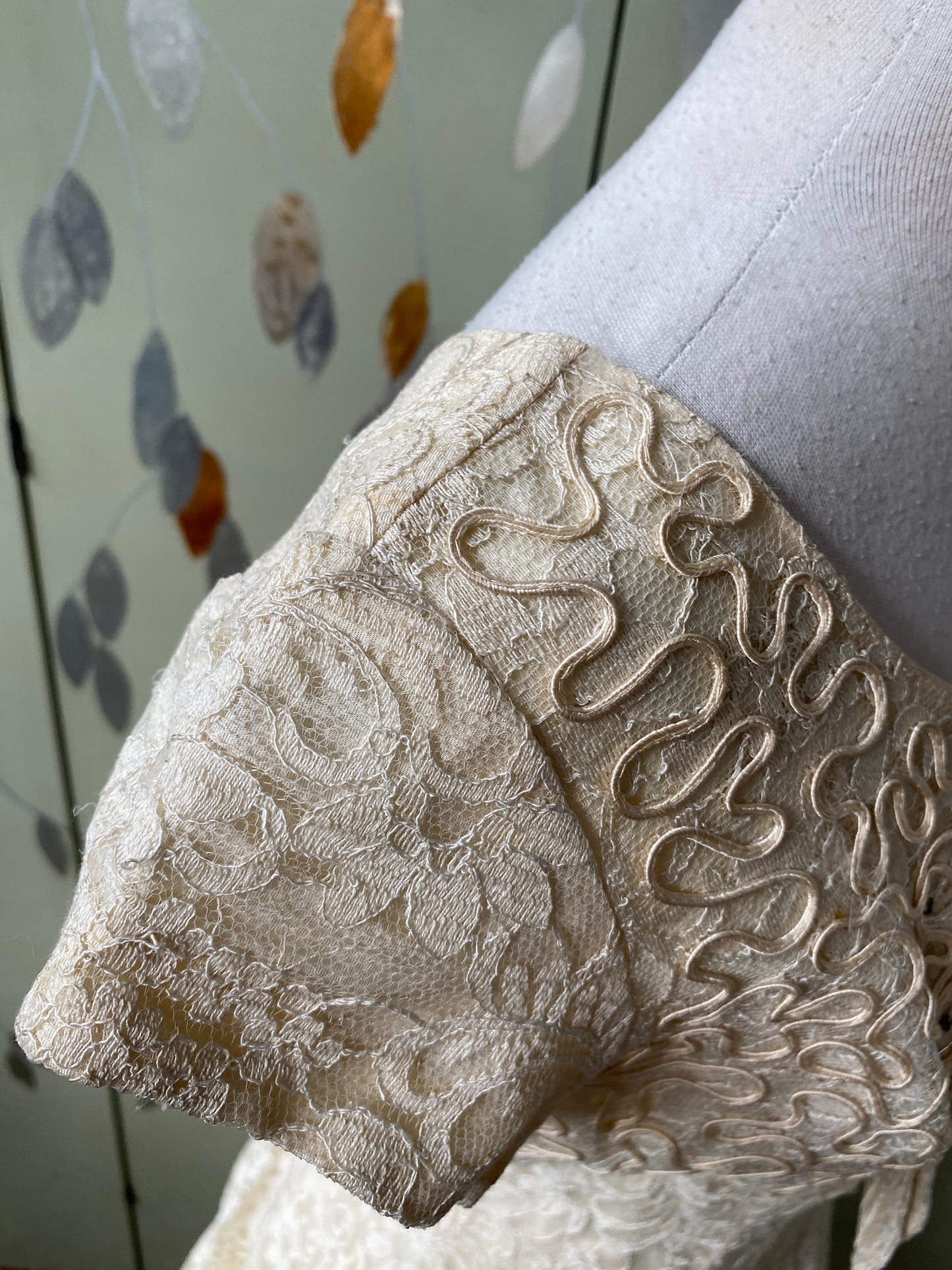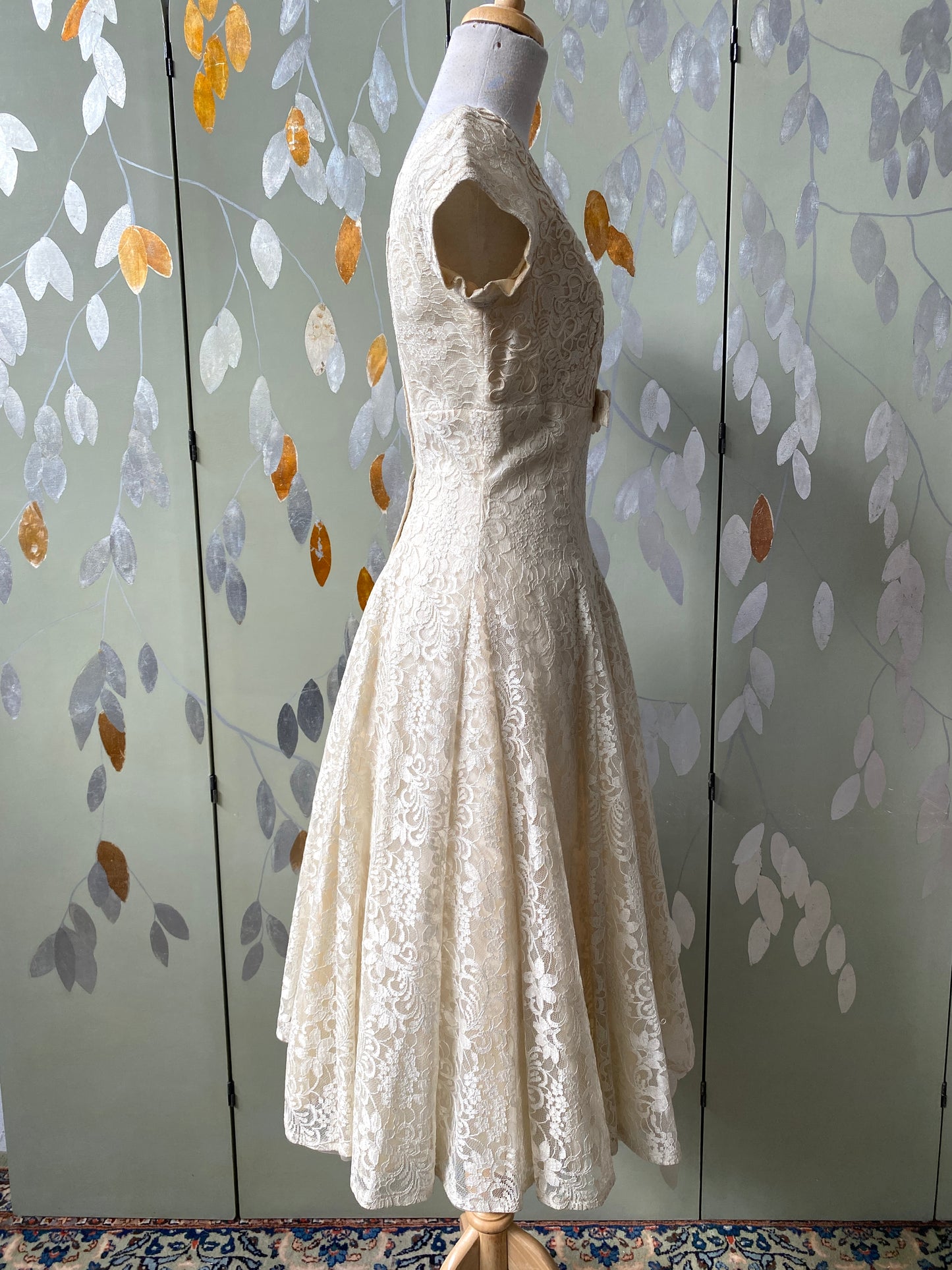 Vintage 1950s Cream Lace Cocktail Dress with Embellished Bodice, B34"