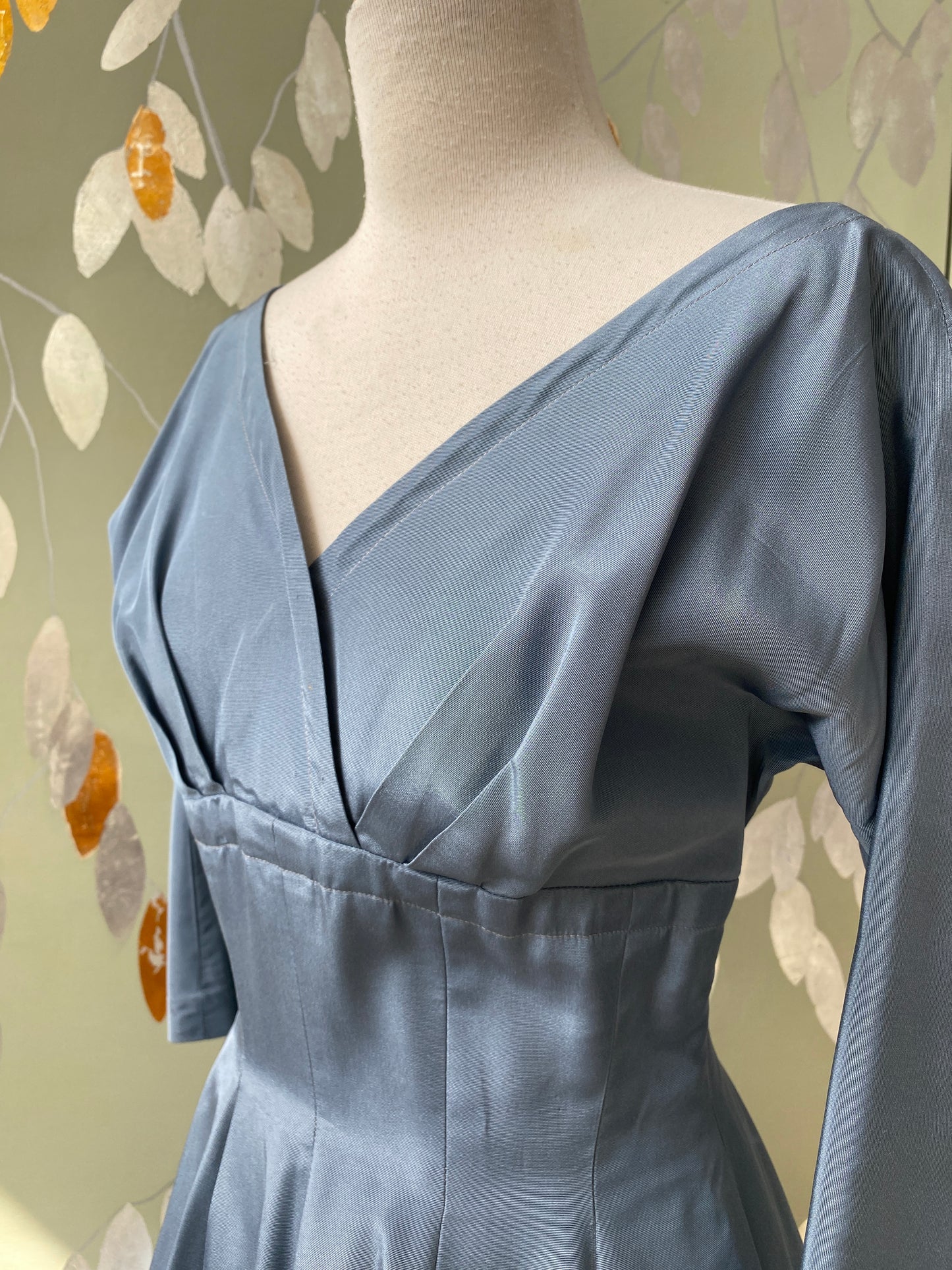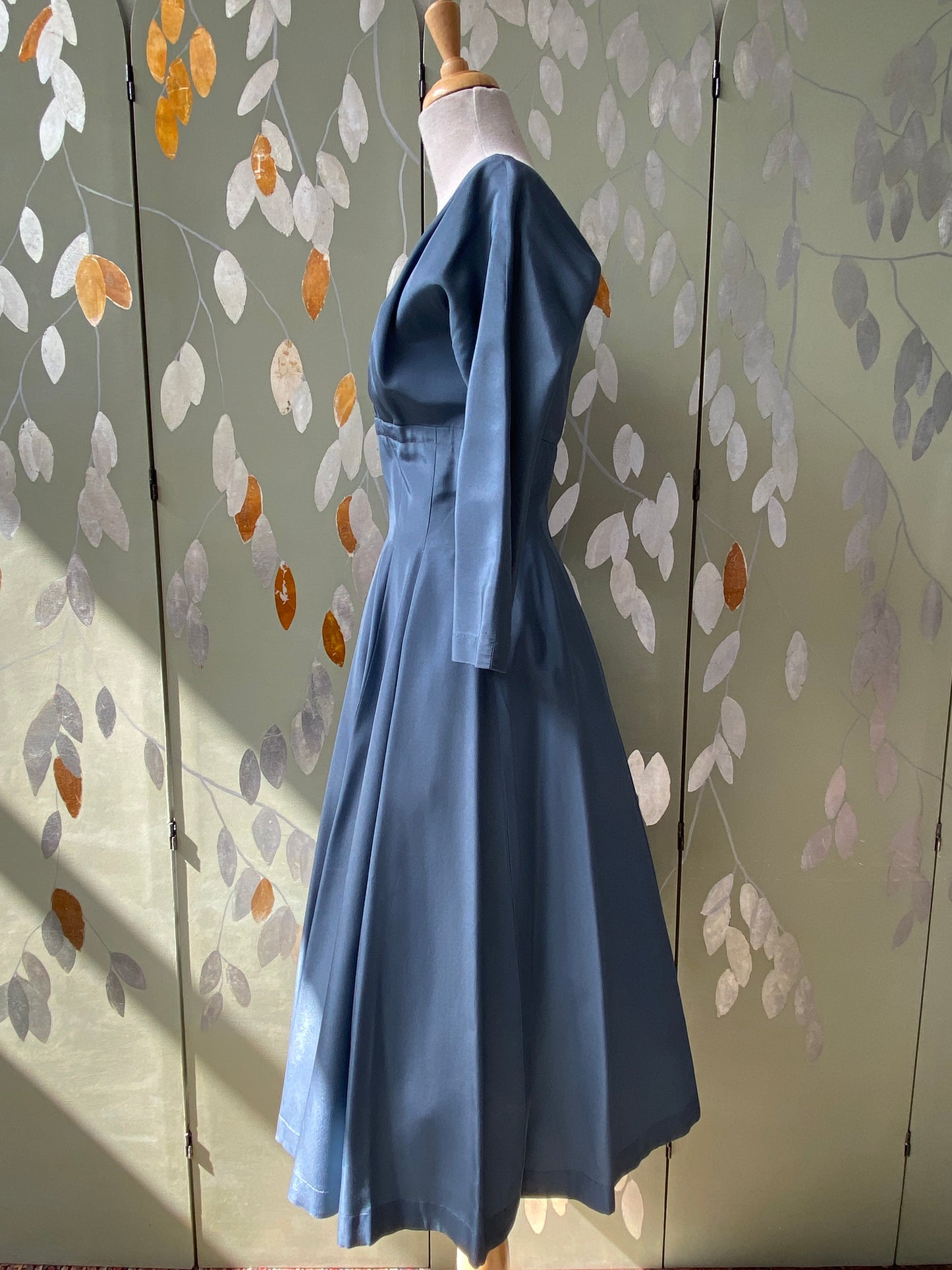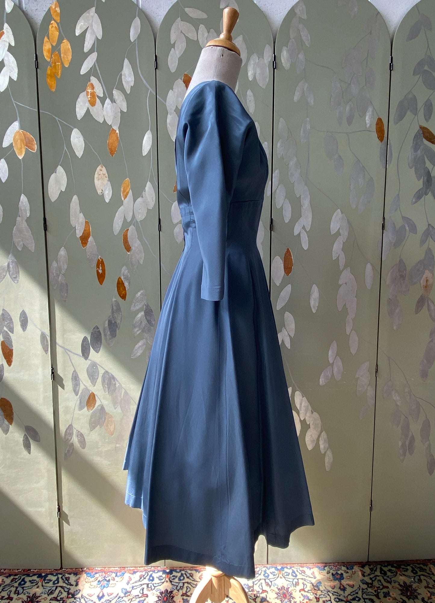 Vintage 1950s French-Blue Cocktail Dress, Small
