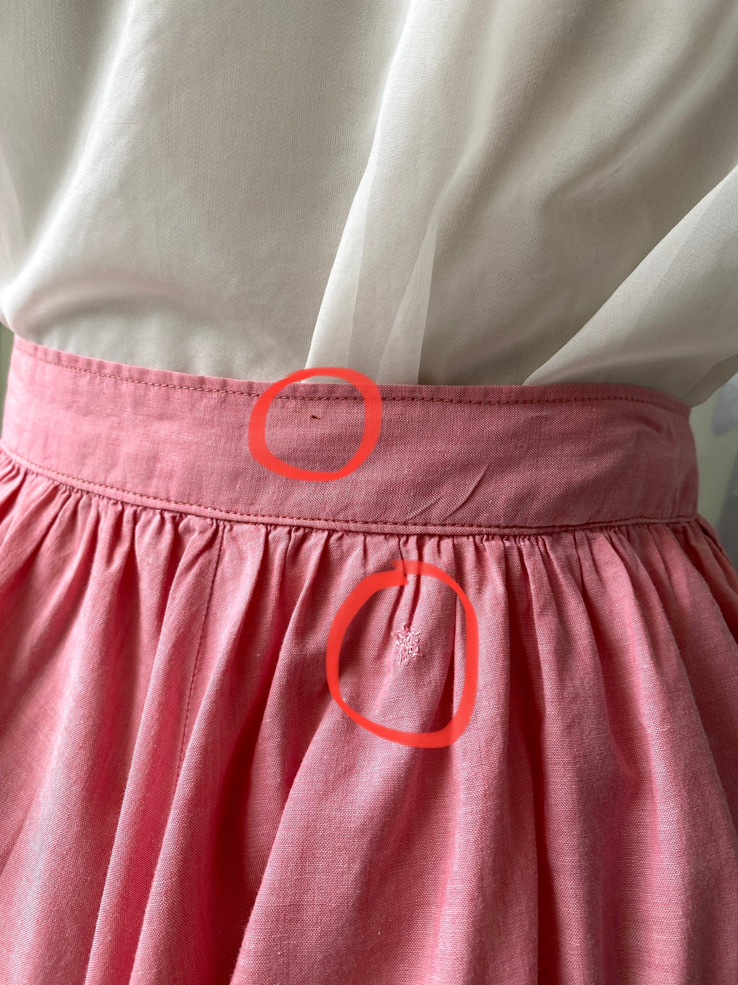 CONDITION: A few marks on the waistband. A small hole which has been stitched up.