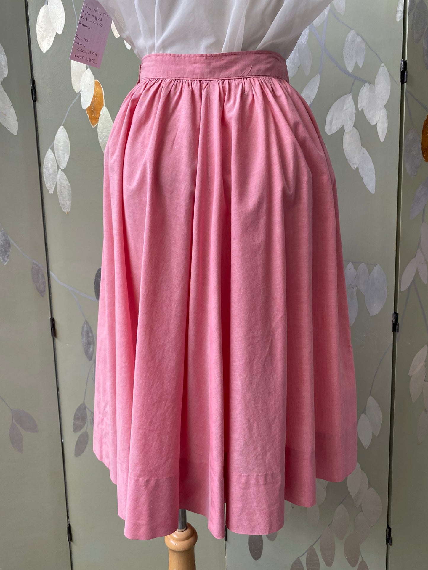 Vintage 1950s Pink Cotton Gathered Skirt, W24"