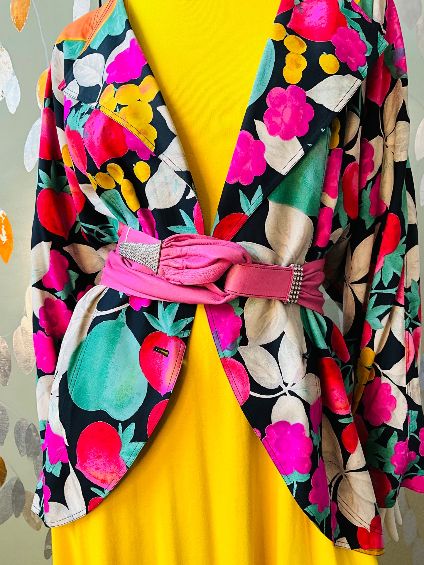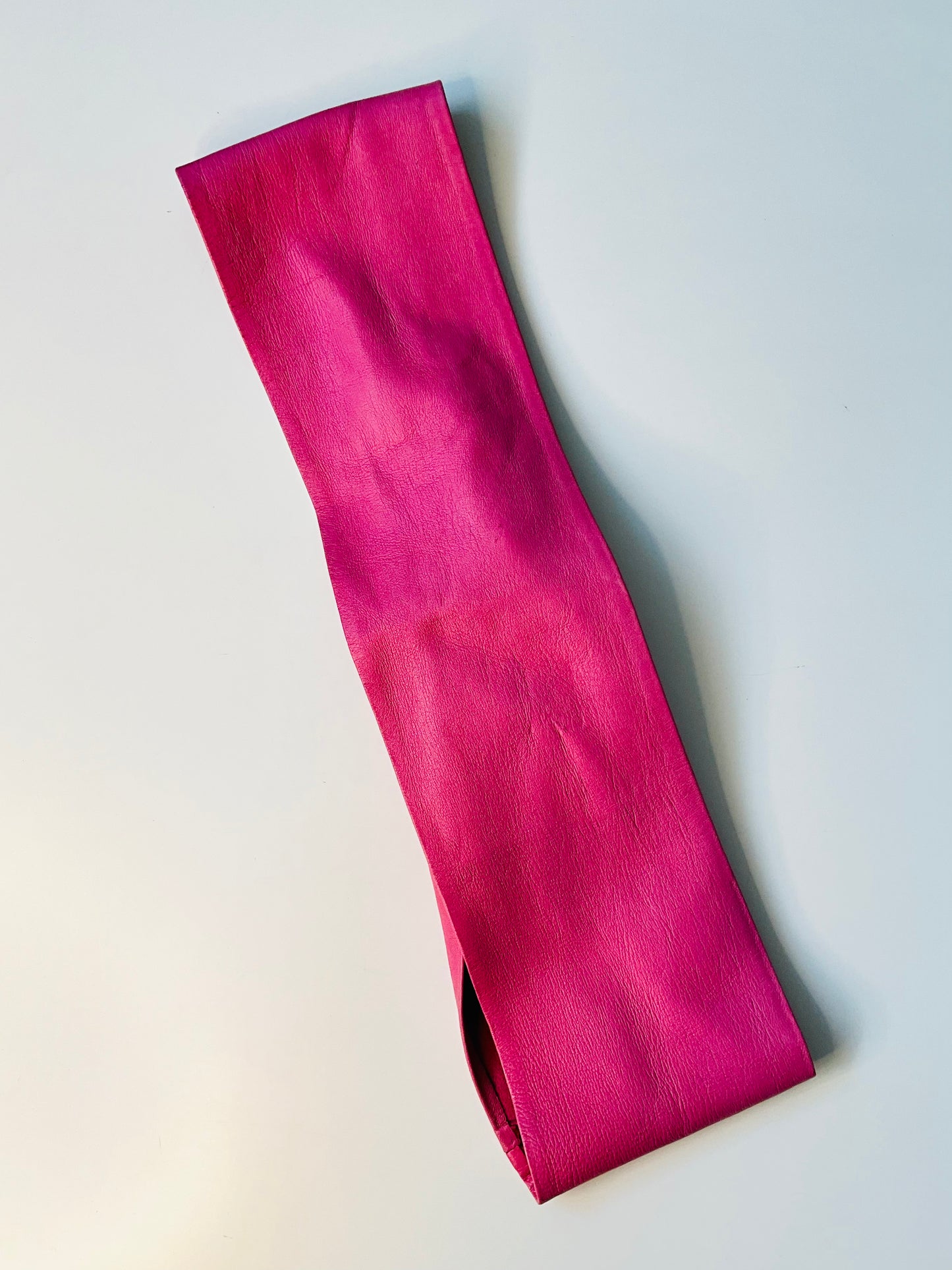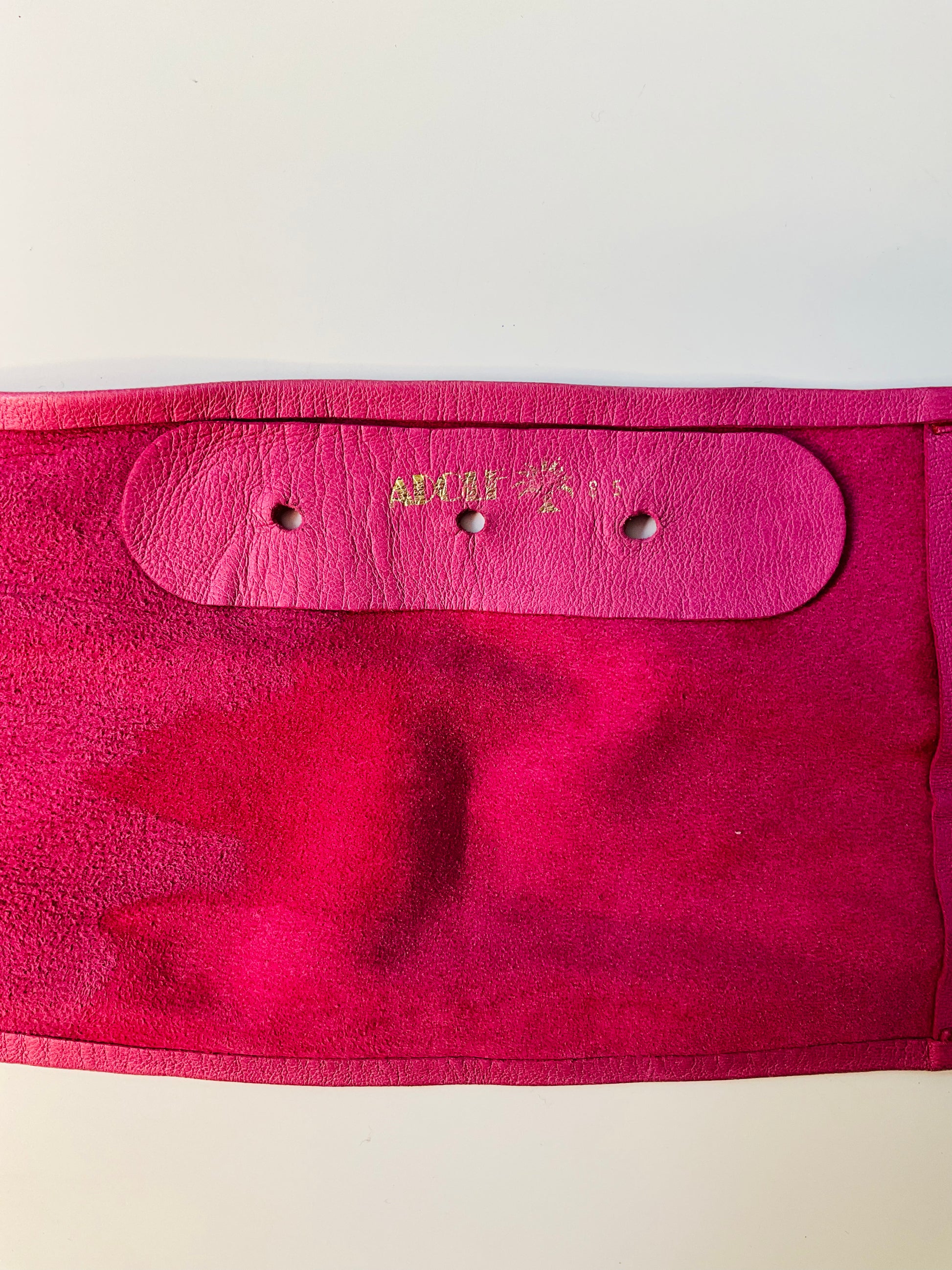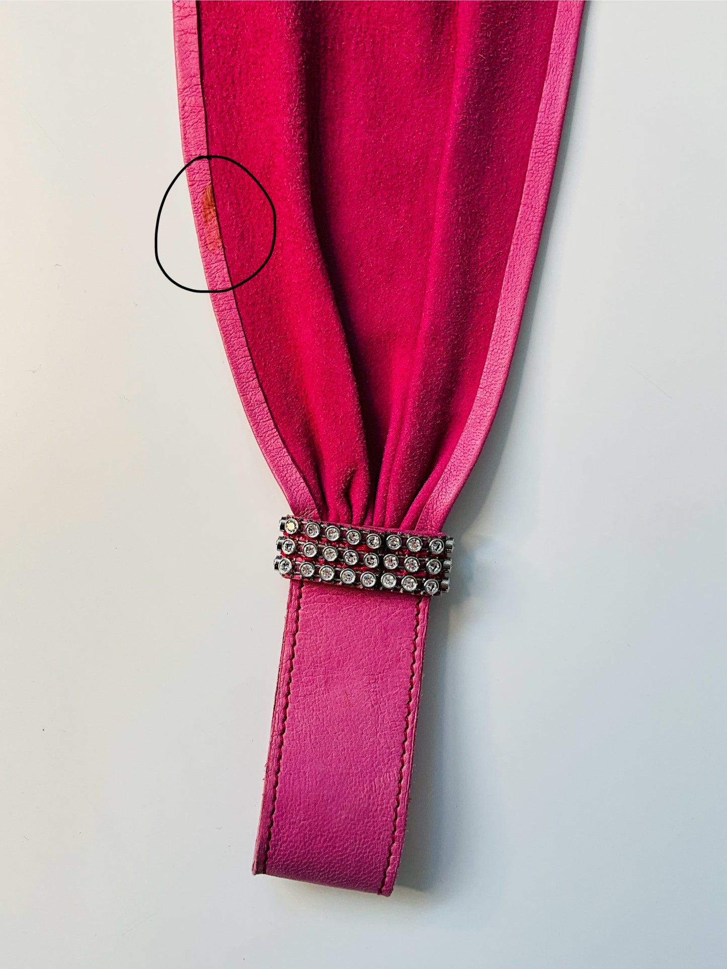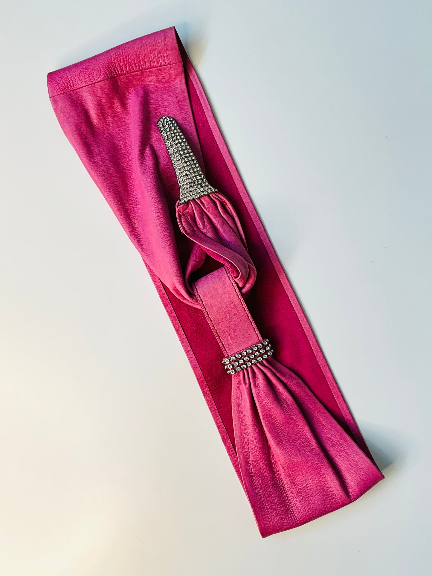 Vintage 1980s/ early 90s pink leather diamanté waist cinch belt from Milli's, Hamilton, Ontario.