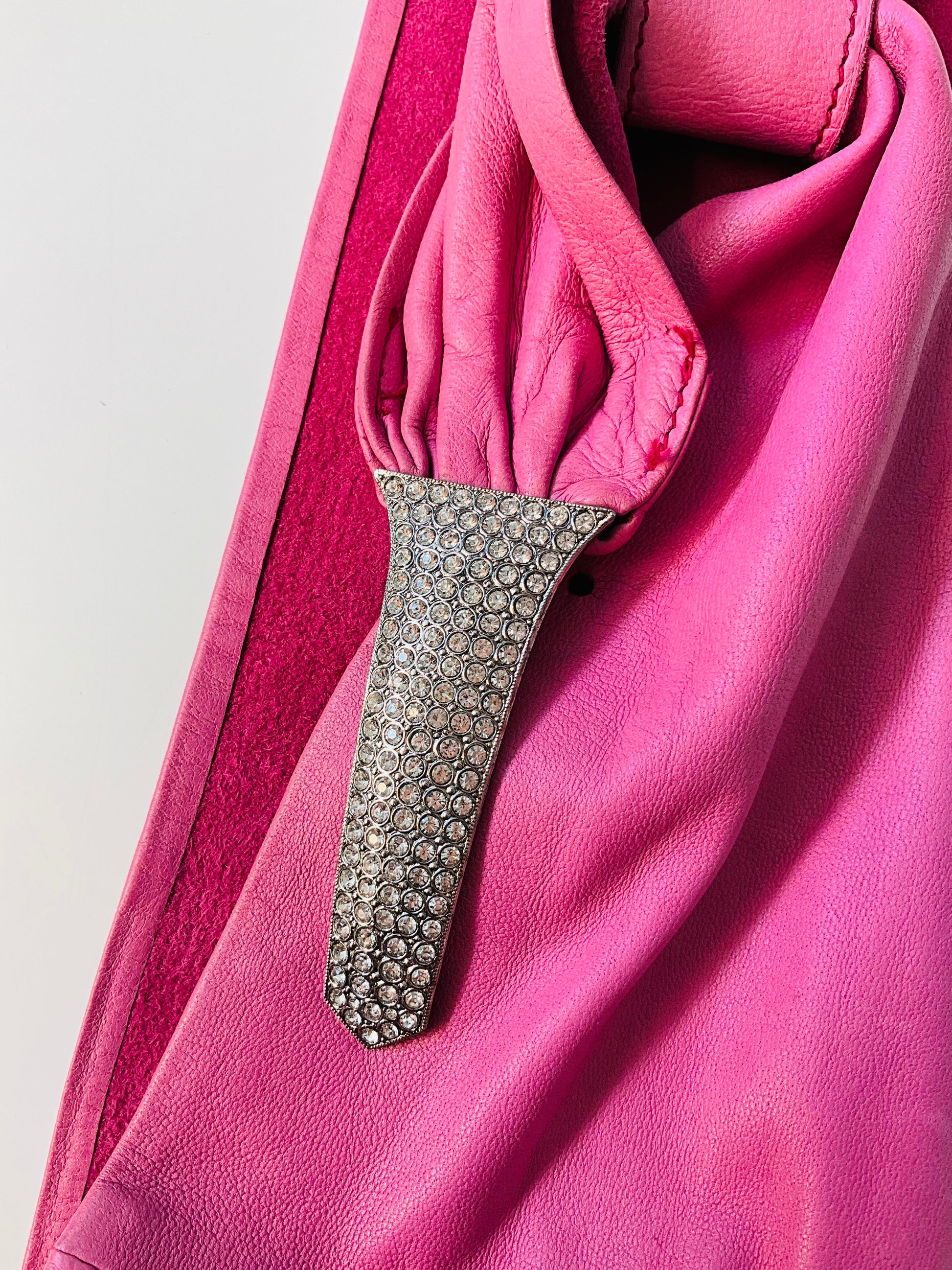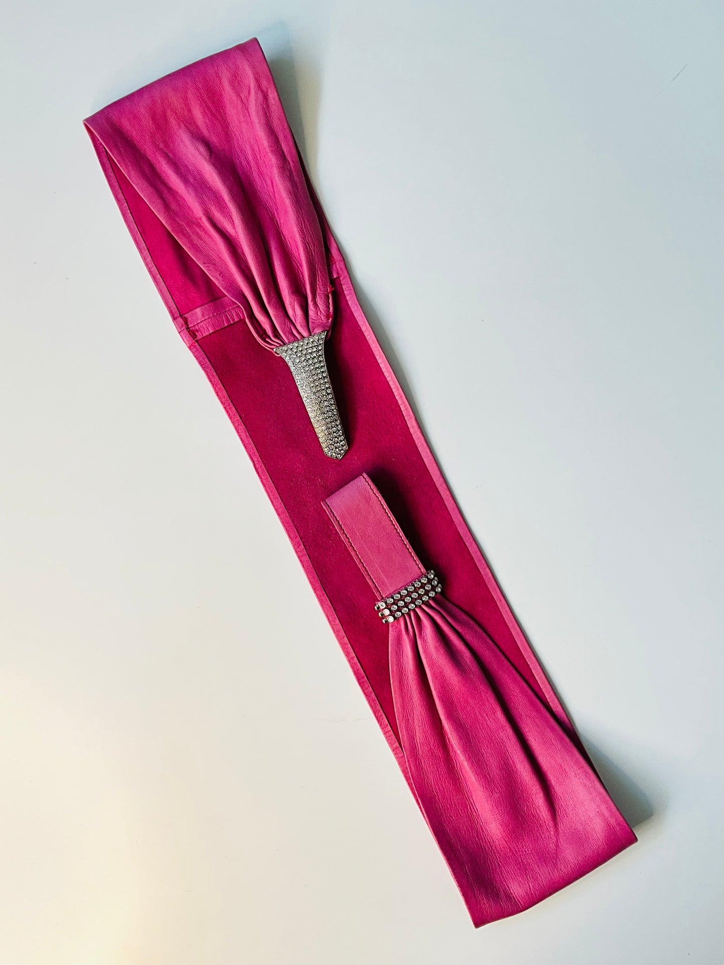 Vintage 1980s Pink Leather Diamanté Waist Cinch Belt