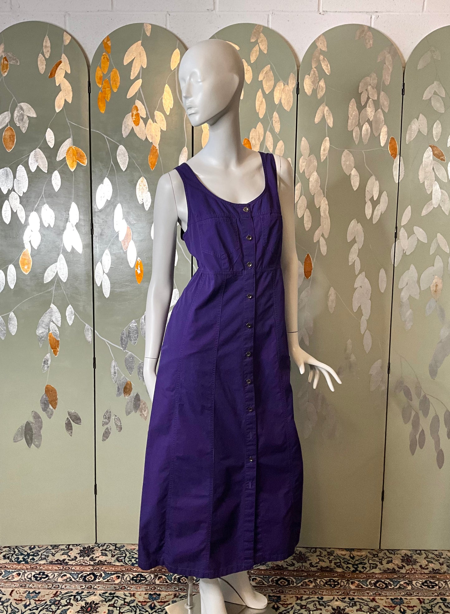 Vintage 1990s Purple Cotton Button-Up Maxi Dress, Large