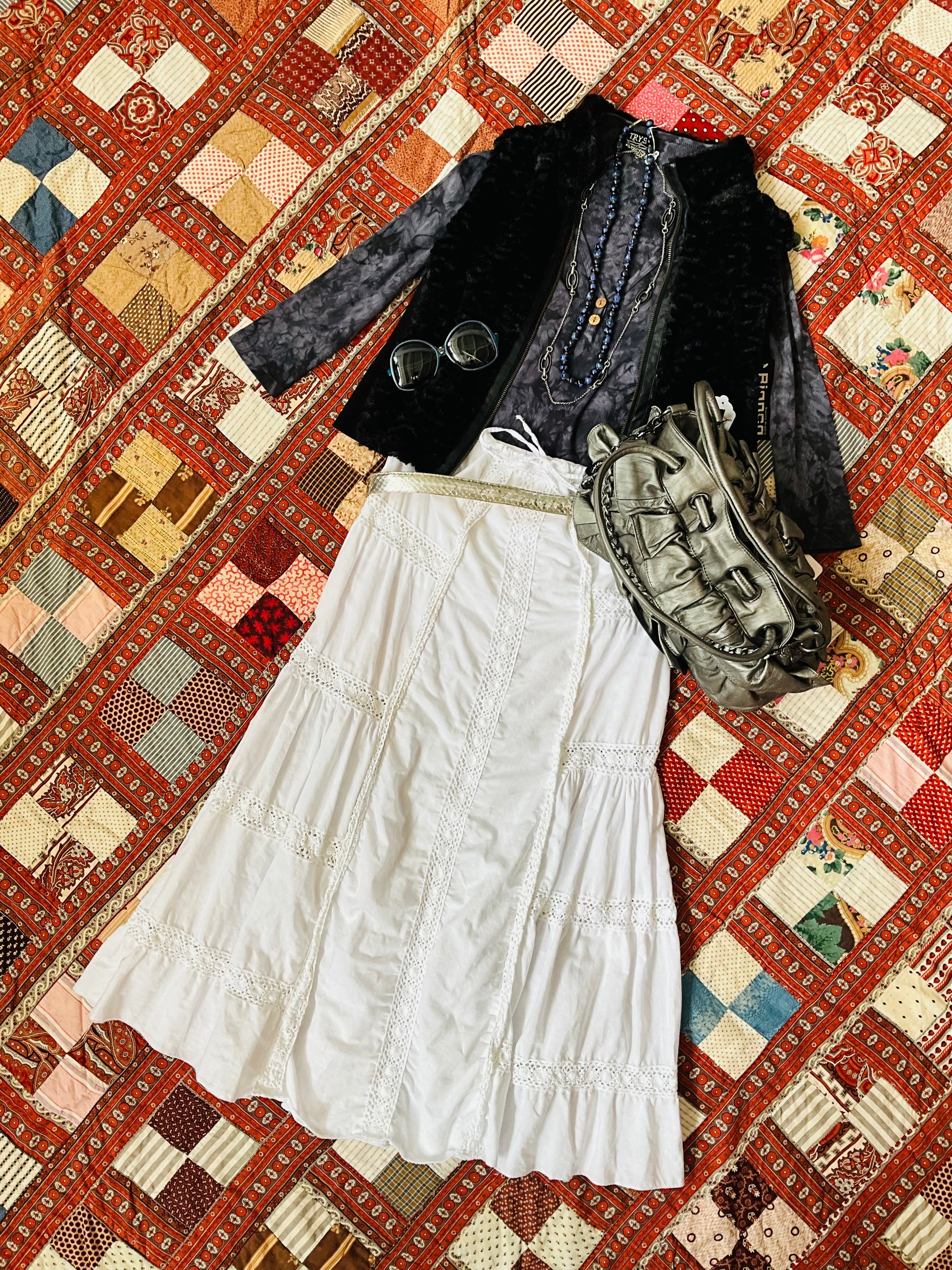 Vintage 2000s White Cotton Crochet Boho Maxi Skirt, Medium