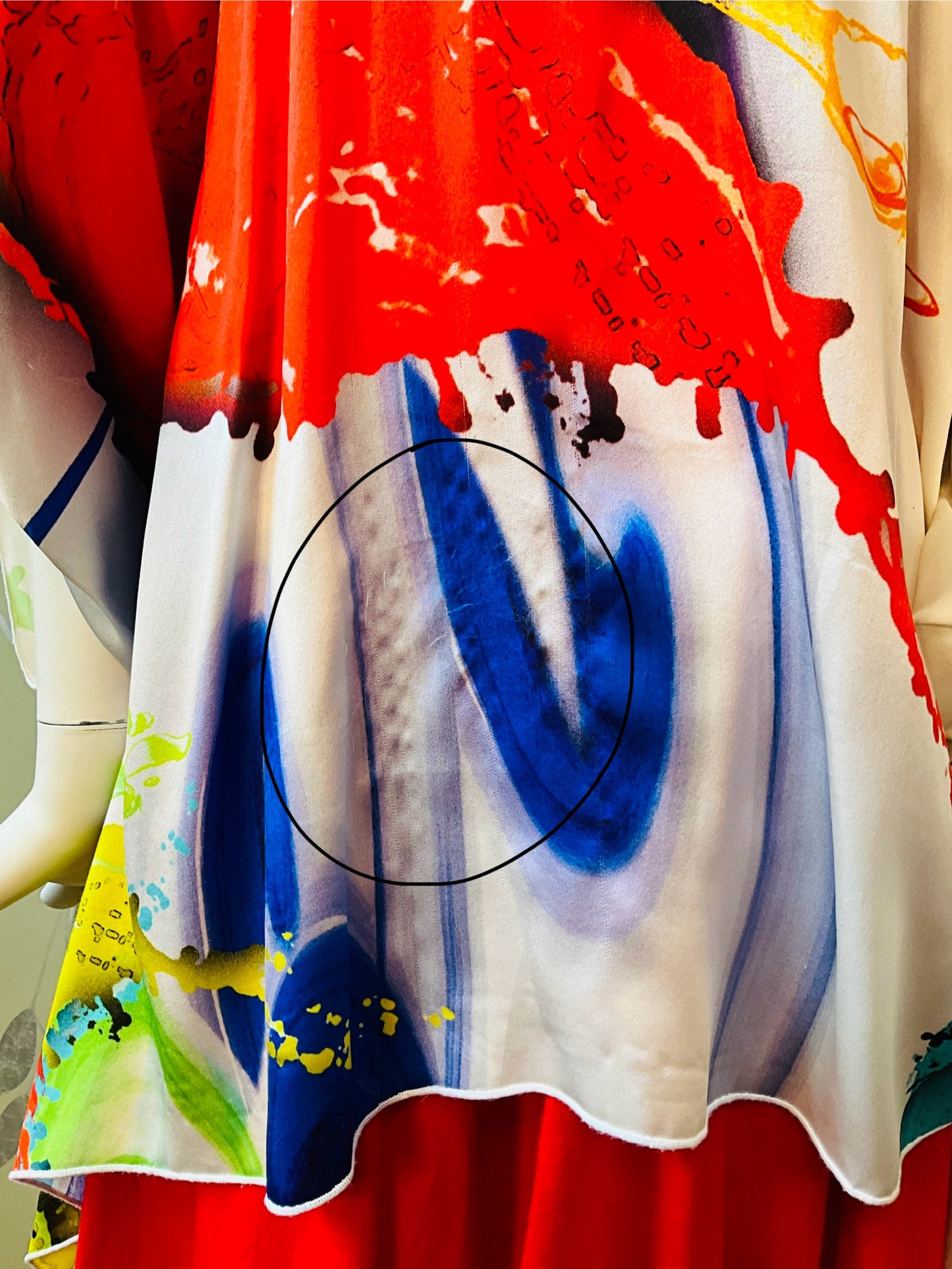Vintage 2000s White Silk Wearable Art Paint Colour Splash Summer Top, S/M